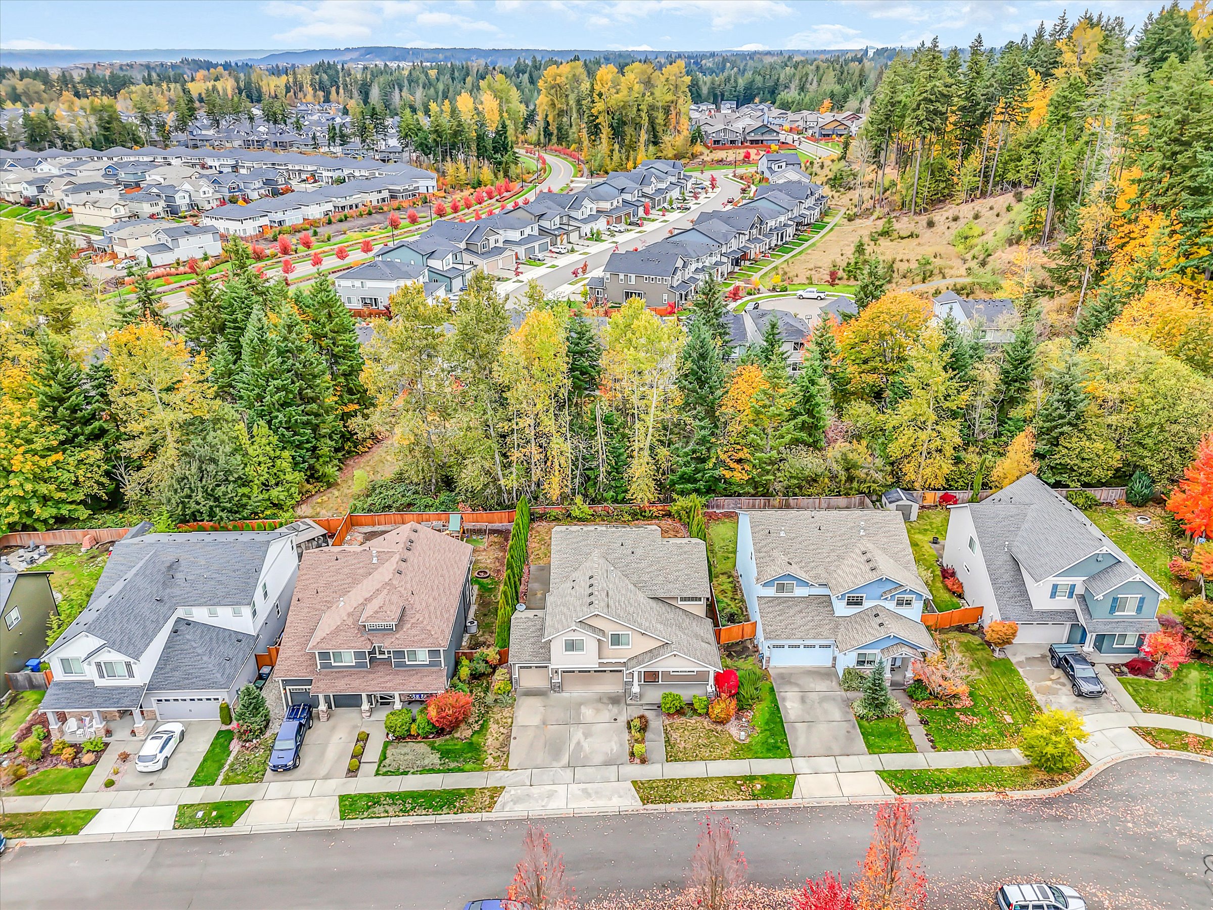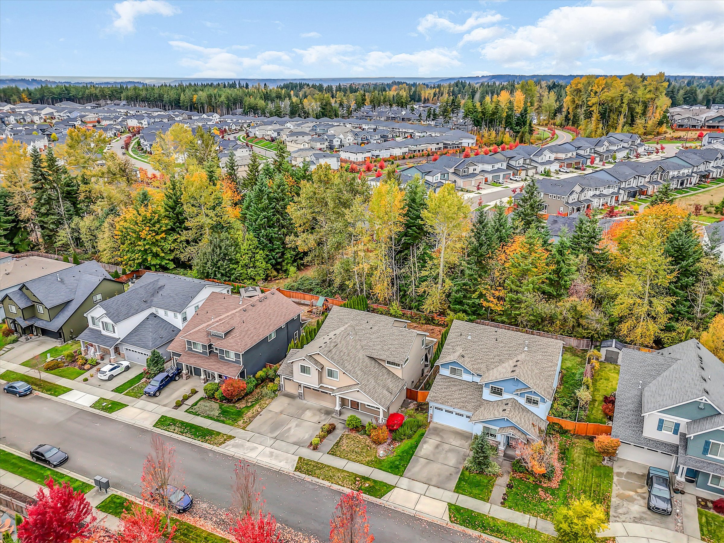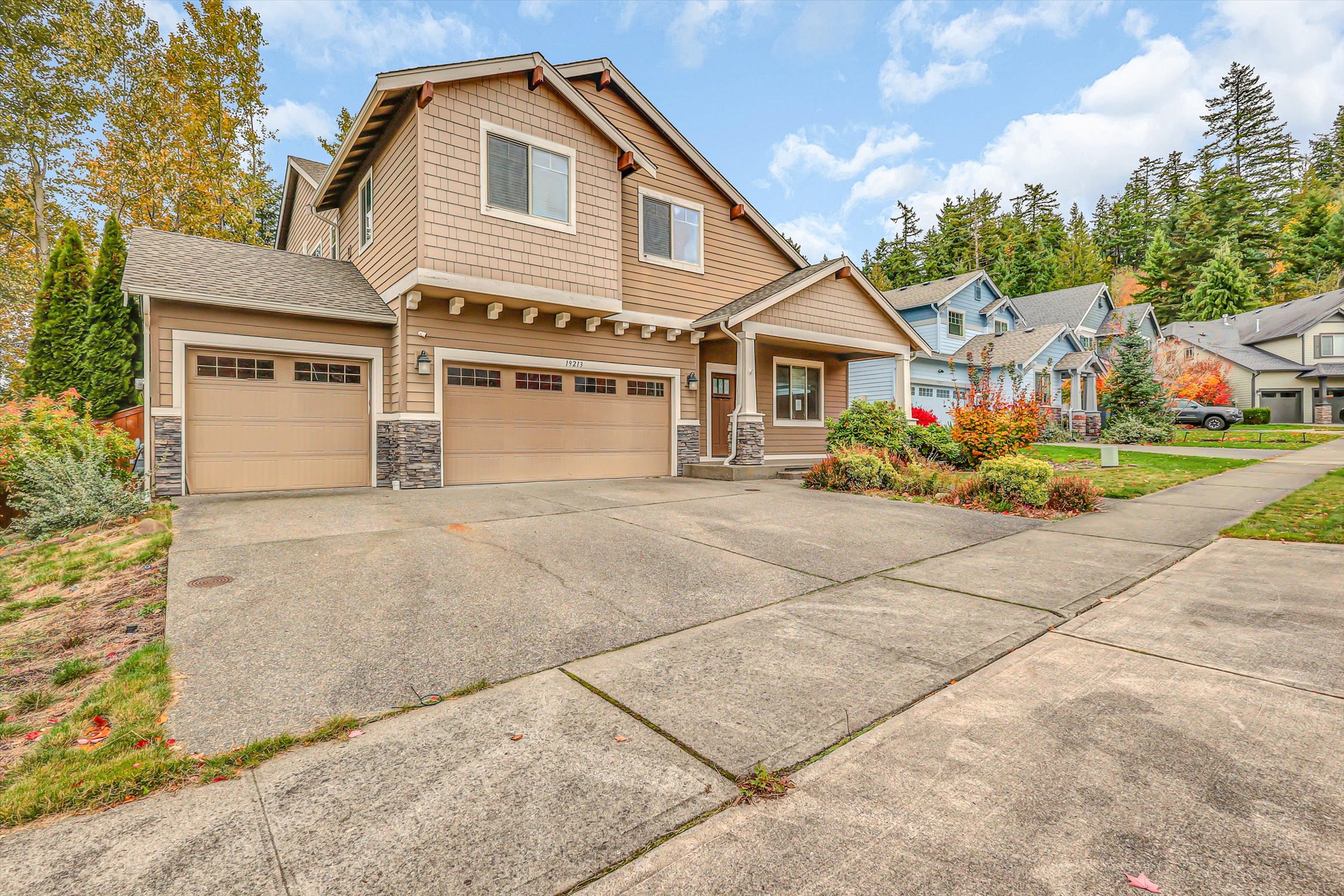 Discover this spacious Tehaleh two-story home offering over 2900 sq ft of thoughfully designed living space. Built in 2013, this residence blends confort, functionality, and Northwest style. Upstairs you'll find five generous bedrooms including the primary suite with a luxurious bathroom featuring soaking tub and seperate shower, plus huge walkin closet. The heart of the home is the open kichen sealessly connected to the family room with gas fireplace and the dining area for easy gatherings. Sliding doors extend the living space to outdoors with covered patio and second fireplace. Practical features include bedroom and bathroom on main level plus a 3-car garage for plenty of parking and storage, huge under stairs storage.